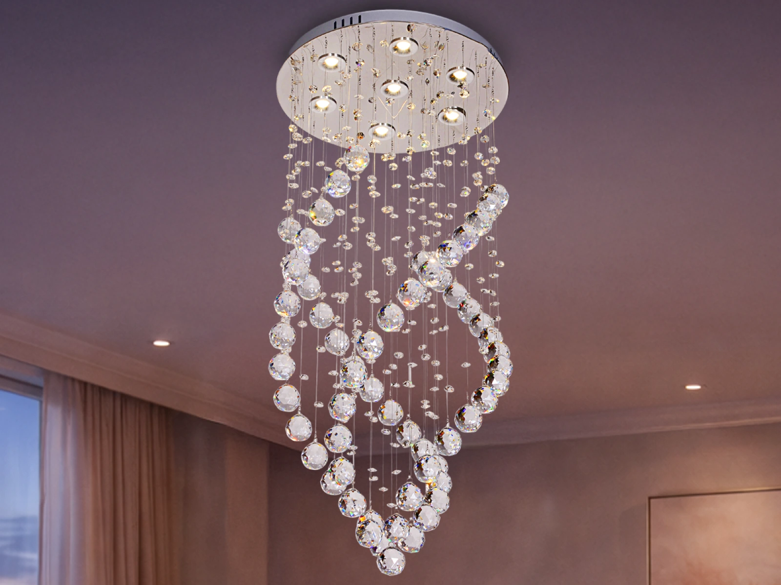 Die moderne LED-Leuchte der Marke NEDES mit einem dezenten Kristalldesign überzeugt durch ein feines Lichtspiel und eine luftige Ausführung. Die hängenden geschliffenen Kristalle erzeugen einen angenehmen Lichteffekt und verleihen dem Interieur ein elegantes Aussehen.